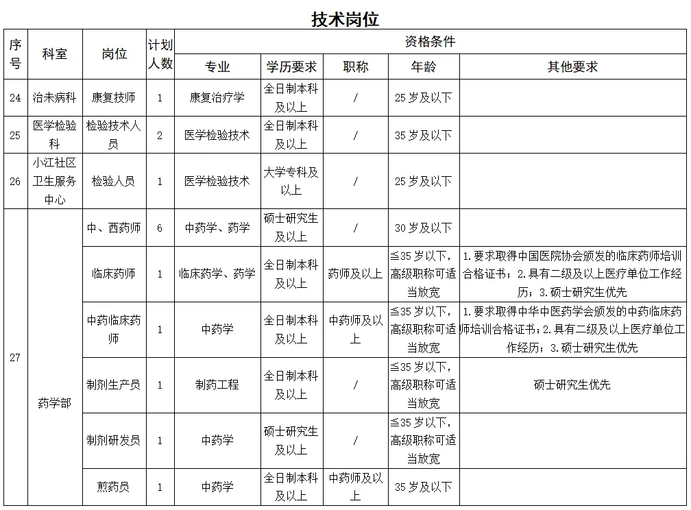 備注:醫(yī)學(xué)類(lèi)碩士研究生及以上學(xué)歷、醫(yī)學(xué)類(lèi)副高及以上職稱(chēng)者不受招聘專(zhuān)業(yè)及名額限制。