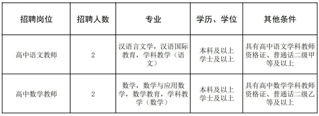 根據發(fā)展需要,學校擬招聘高中語文、高中數學頂崗教師共4人,具體招聘信息如下: