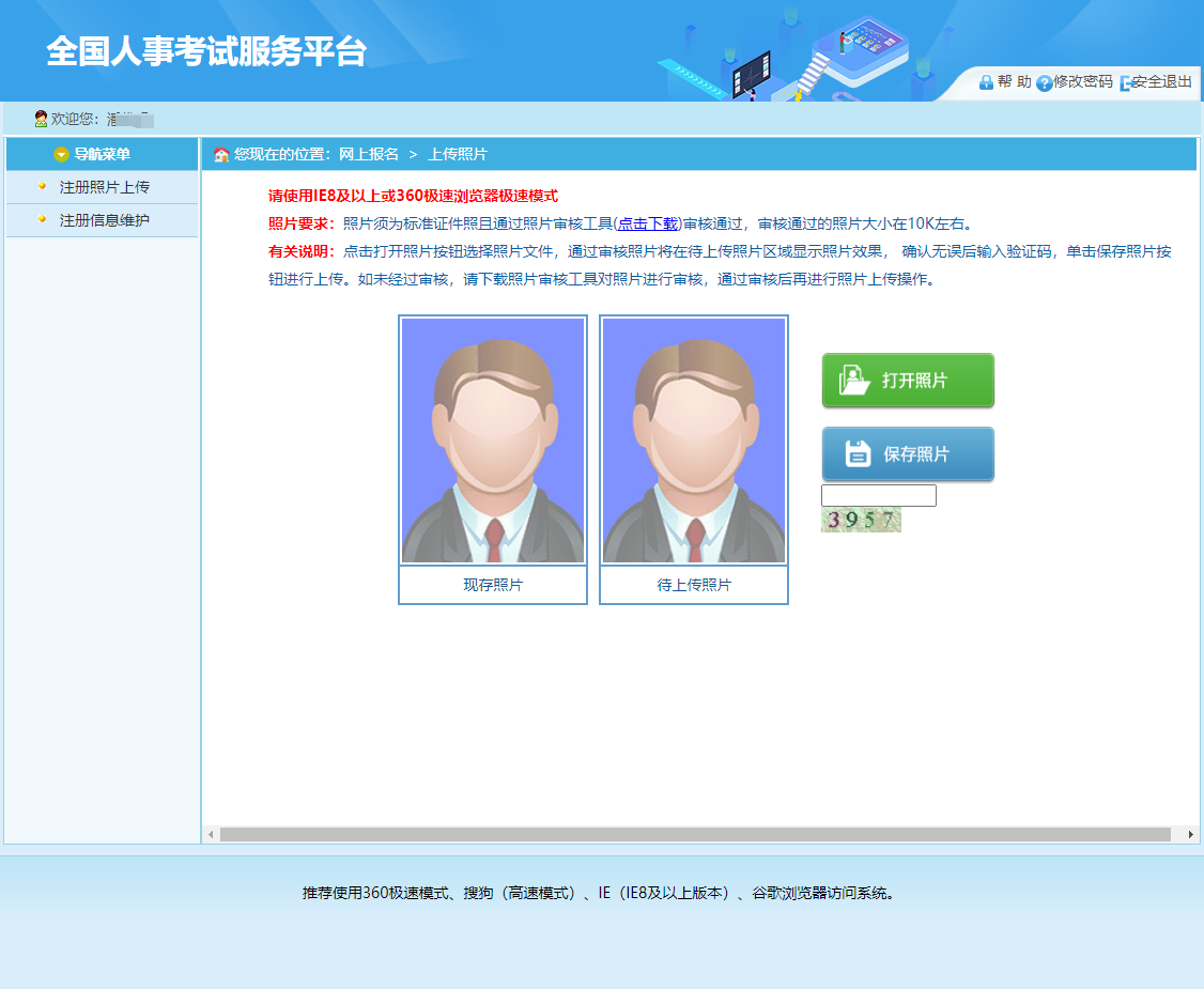 第四步:上傳報(bào)名照片(注:需要用電腦端下載照片處理工具,對(duì)照片進(jìn)行審核,準(zhǔn)備好一張紅藍(lán)白底證件照,進(jìn)入照片審核處理工具進(jìn)行處理,完成之后用處理好的照片在此頁面上傳)
