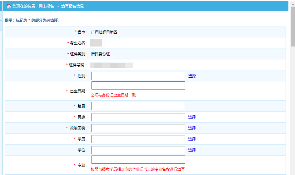 第二步:點(diǎn)擊“注冊(cè)”,進(jìn)入考生注冊(cè)頁面,考生注冊(cè)填寫個(gè)人信息