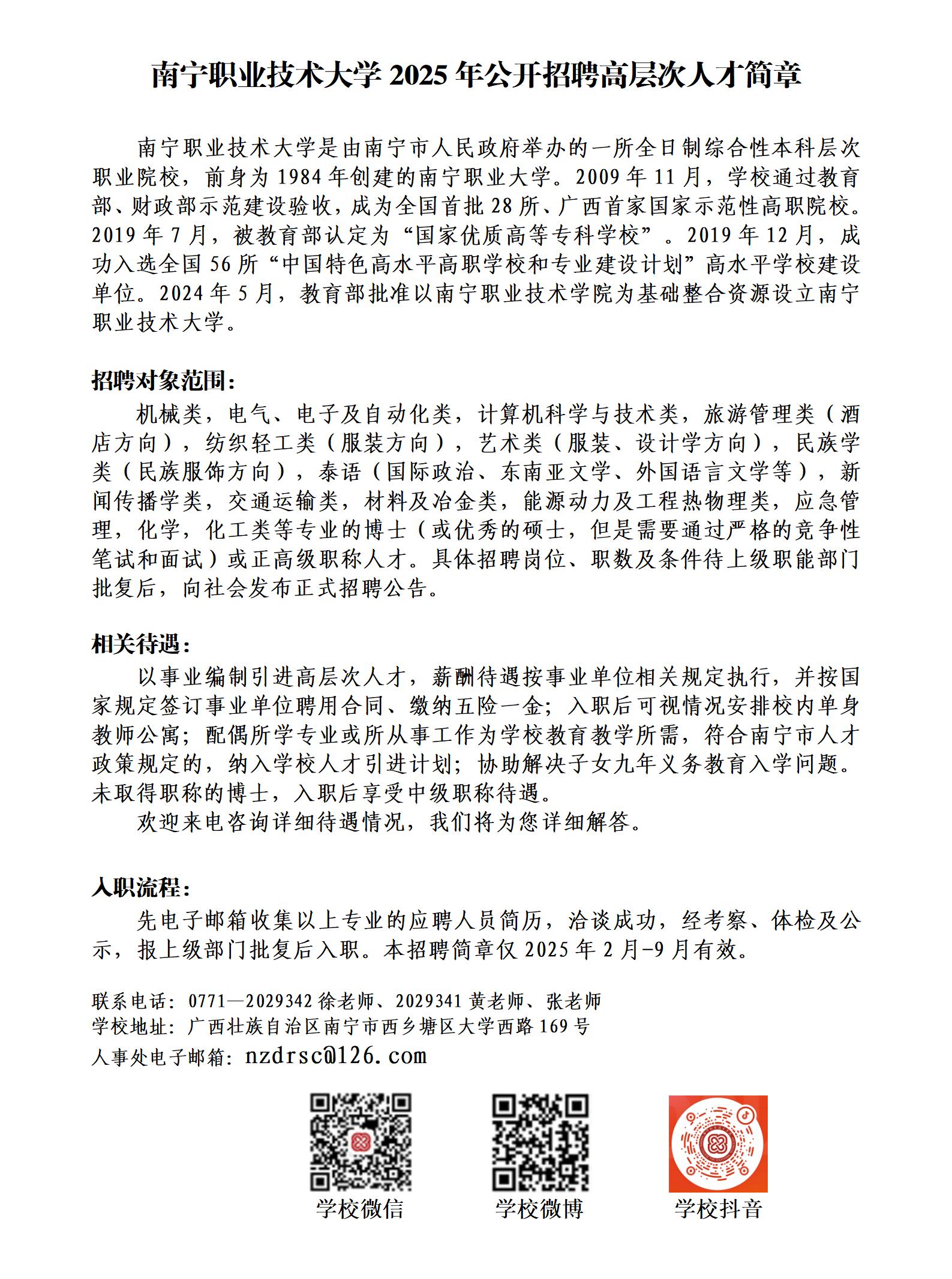 南寧職業(yè)技術(shù)大學(xué)2025年招聘高層次人才簡(jiǎn)章