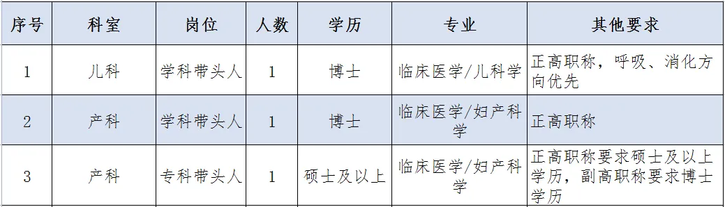 (4)其他情況,年齡要求:初級職稱不超過30歲、中級職稱不超過35歲、副高職稱不超過45歲,正高職稱不超過50歲;醫(yī)師崗位要求四證齊全,即畢業(yè)證、學(xué)位證、醫(yī)師資格證、規(guī)培證齊全。