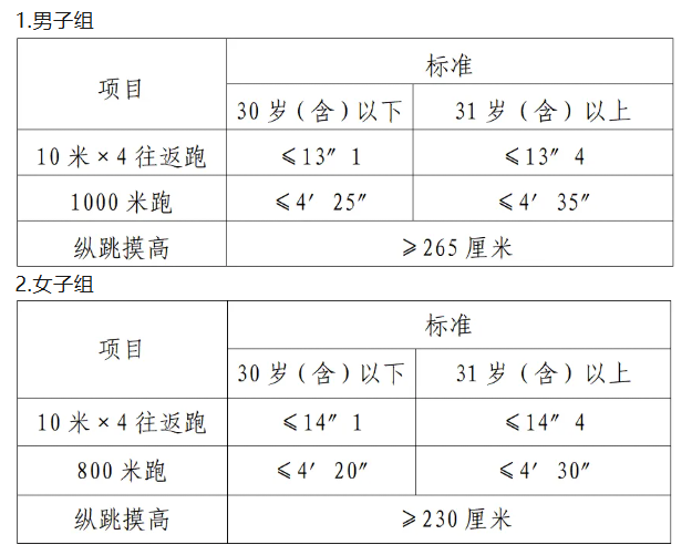 參加體能測評人員為筆試考試成績合格的考生。體能測評的標(biāo)準(zhǔn):參照《關(guān)于印發(fā)公安機關(guān)錄用人民警察體能測評項目和標(biāo)準(zhǔn)(暫行)的通知》(人社部發(fā)〔2011〕48號)的標(biāo)準(zhǔn)。