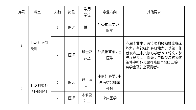(2)博士:長期招聘(醫(yī)院將根據(jù)報名情況分批次安排面試,具體以醫(yī)院通知為準(zhǔn))