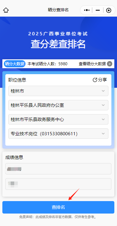 根據提示選擇自己的崗位,如實輸入分數,不僅可以看見同崗位分差情況,還可以看見自己分數在本系統(tǒng)排名,曬分榜情況等: