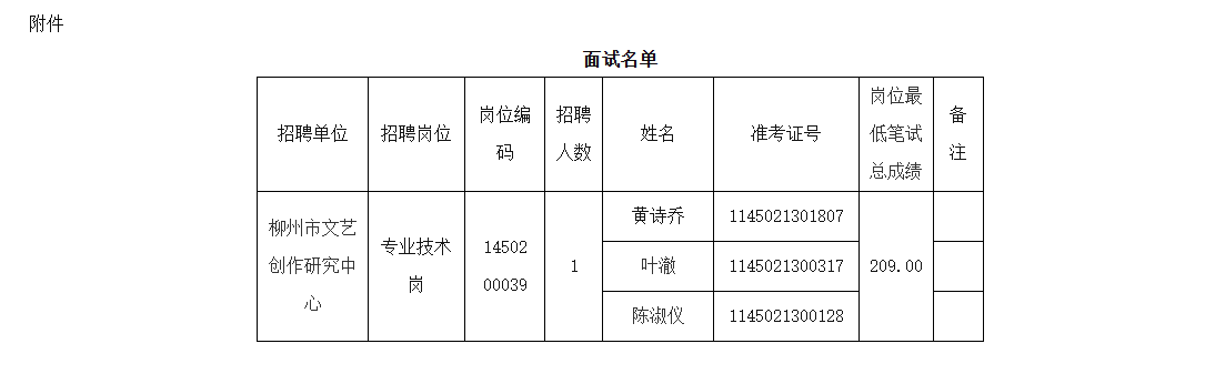 根據(jù)《廣西壯族自治區(qū)事業(yè)單位公開招聘人員實施辦法》(桂人社發(fā)〔2011〕155號)、《廣西壯族自治區(qū)人力資源和社會保障廳關(guān)于印發(fā)廣西2025年度上半年事業(yè)單位統(tǒng)一公開招聘工作實施方案的通知》(桂人社發(fā)〔2025〕3號)、《柳州市2025年度上半年事業(yè)單位公開考試招聘工作人員公告》等文件精神,柳州市文聯(lián)擬組織所屬事業(yè)單位柳州市文藝創(chuàng)作研究中心公招面試工作,現(xiàn)將相關(guān)事宜公告如下: