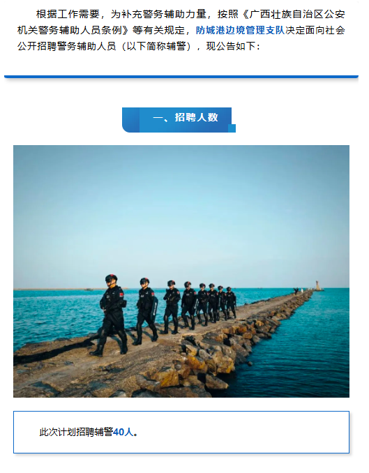 原文標題:防城港邊境管理支隊公開招聘警務輔助人員公告