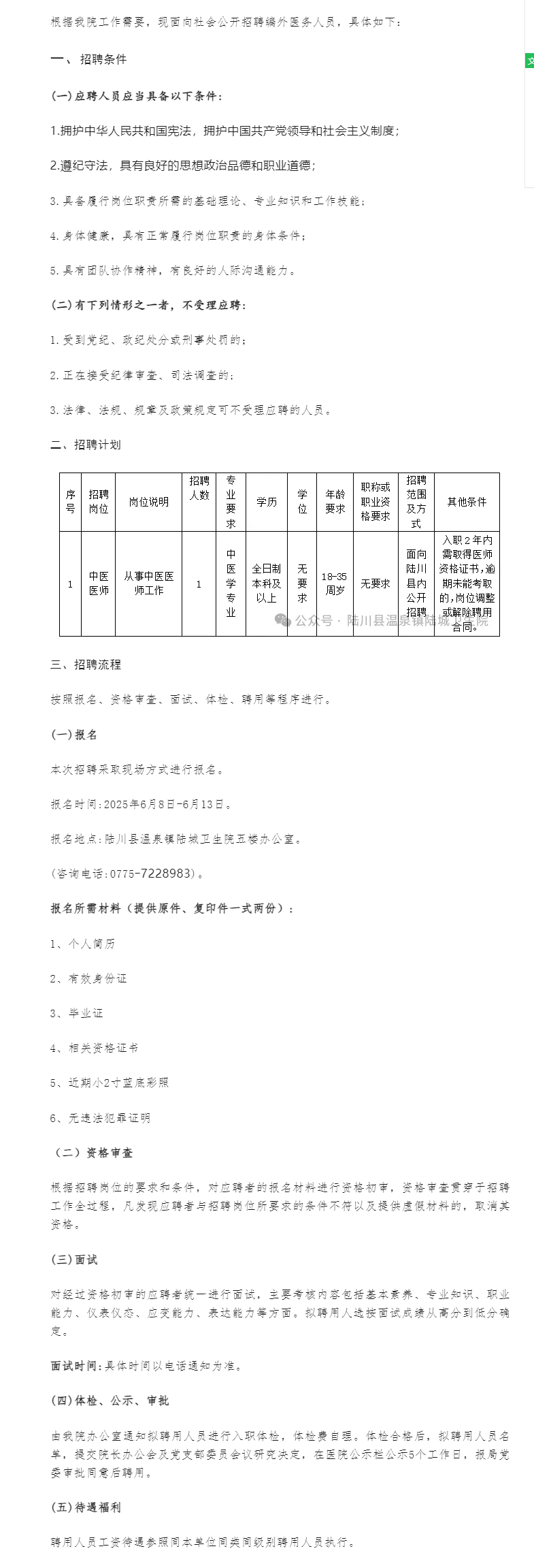 陸川縣溫泉鎮(zhèn)陸城衛(wèi)生院公開招聘編外醫(yī)務(wù)人員1人