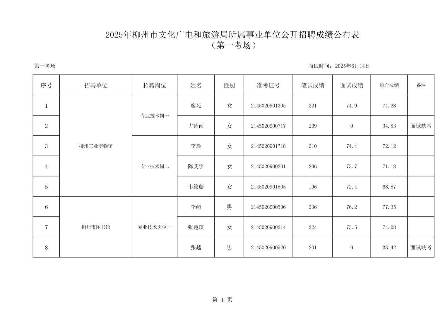 原文標(biāo)題:2025年柳州市文化廣電和旅游局所屬事業(yè)單位公開(kāi)招聘成績(jī)公布表
