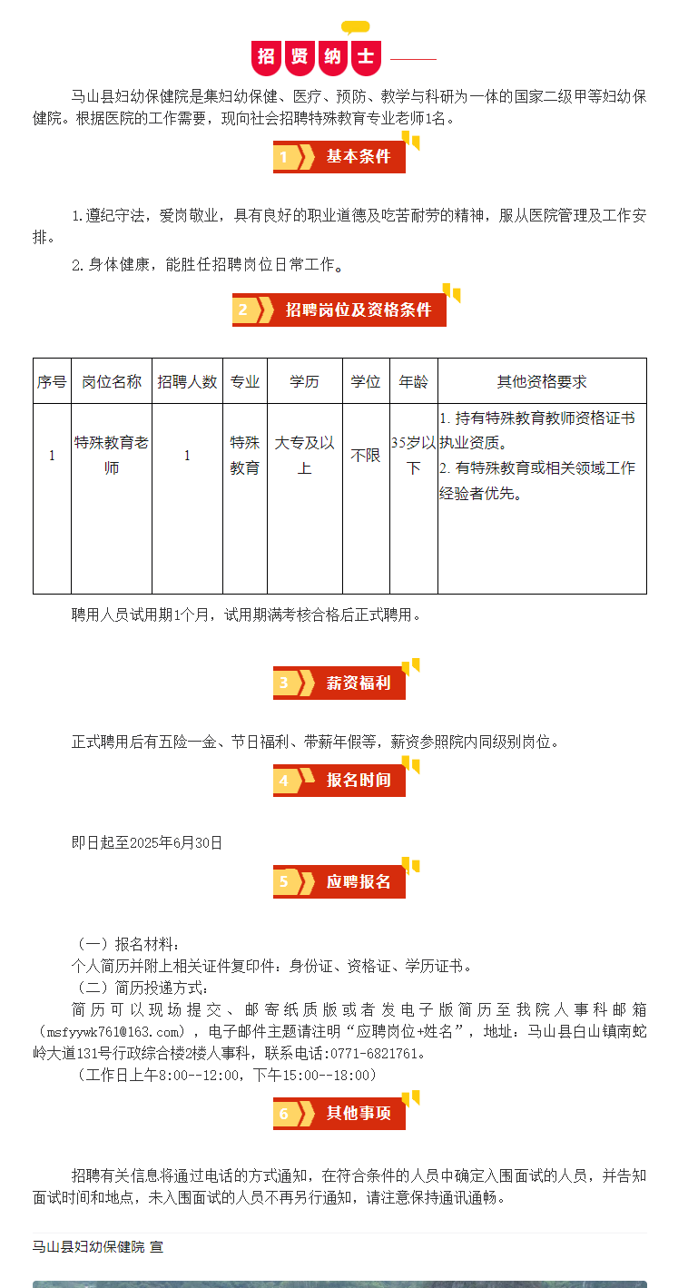 馬山縣婦幼保健院招聘特殊教育專業(yè)老師1人