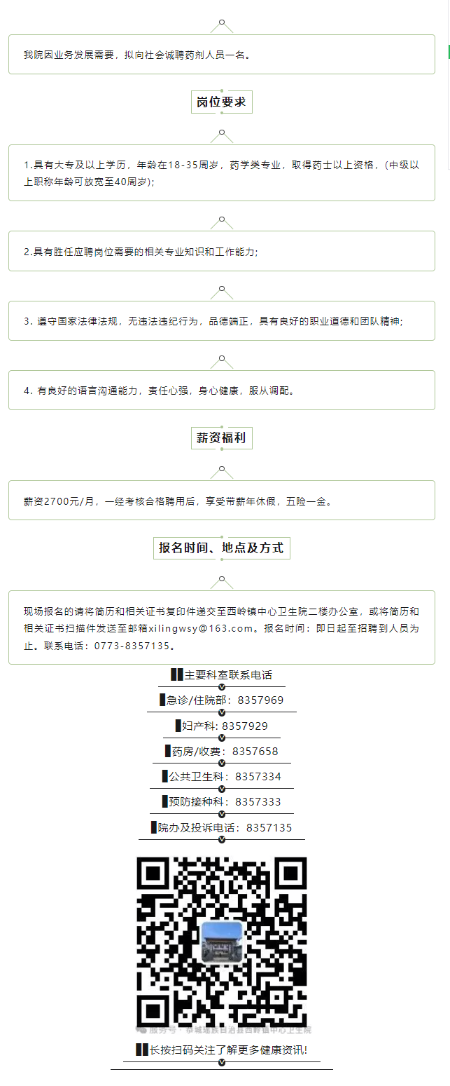 西嶺鎮(zhèn)中心衛(wèi)生院招聘1人