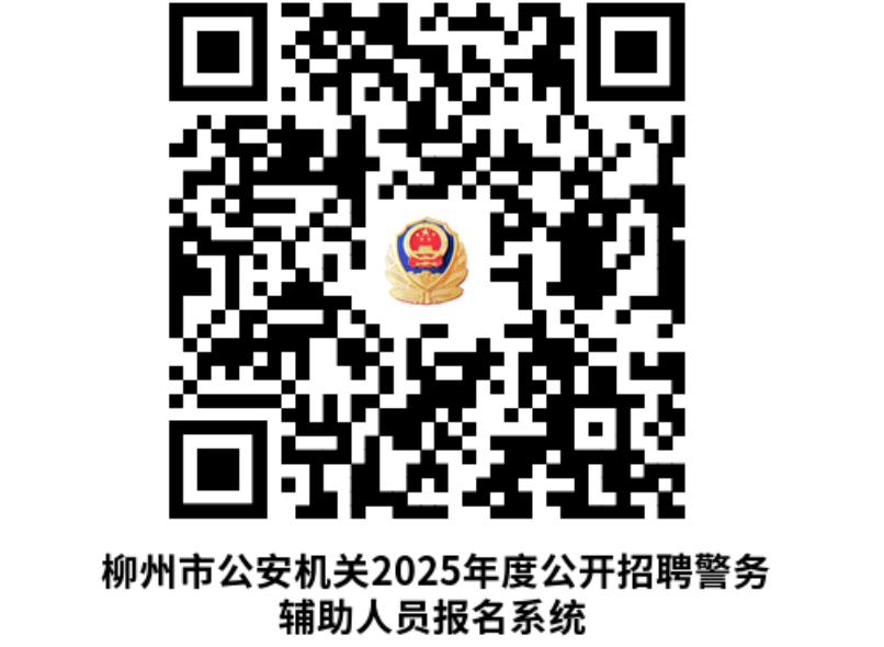 報(bào)名方式:通過掃描二維碼進(jìn)入報(bào)名網(wǎng)站報(bào)考,考生也可登錄柳州市人力資源和社會保障局網(wǎng)站(http://rsj.liuzhou.gov.cn)或進(jìn)入“柳州人社”微信公眾號、“柳州警方”微信公眾號關(guān)注相關(guān)招聘信息進(jìn)行報(bào)考,每人限報(bào)一個(gè)職位。