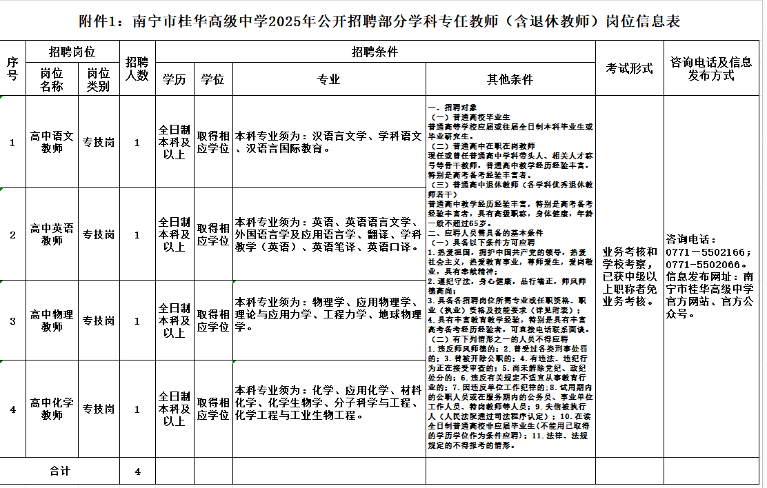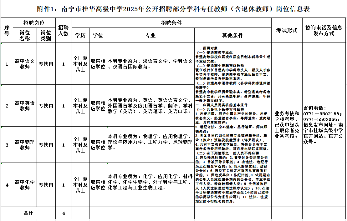 附件1:《南寧市桂華高級(jí)中學(xué)公開(kāi)招聘專任教師(含退休教師)崗位信息表》