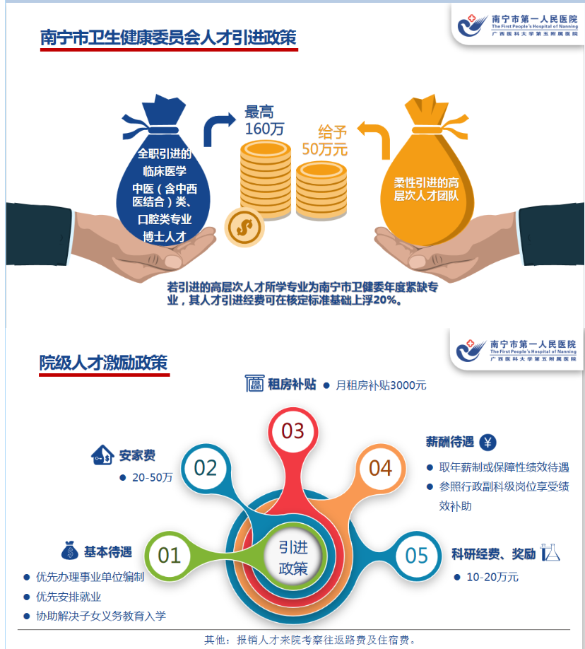具體招聘公告詳見(jiàn)醫(yī)院官網(wǎng)(http://nn1yy.com/)人才信息板塊。具體招聘辦法由南寧市第一人民醫(yī)院解釋。集團(tuán)成員單位待遇按各成員單位相關(guān)制度執(zhí)行。崗位表中列名的常駐地點(diǎn)不構(gòu)成對(duì)具體工作地點(diǎn)或崗位的長(zhǎng)期承諾,醫(yī)院保留根據(jù)員工個(gè)人發(fā)展需要及工作需要對(duì)員工進(jìn)行集團(tuán)內(nèi)調(diào)動(dòng)、交流的權(quán)利,應(yīng)聘人員應(yīng)予以理解并接受。