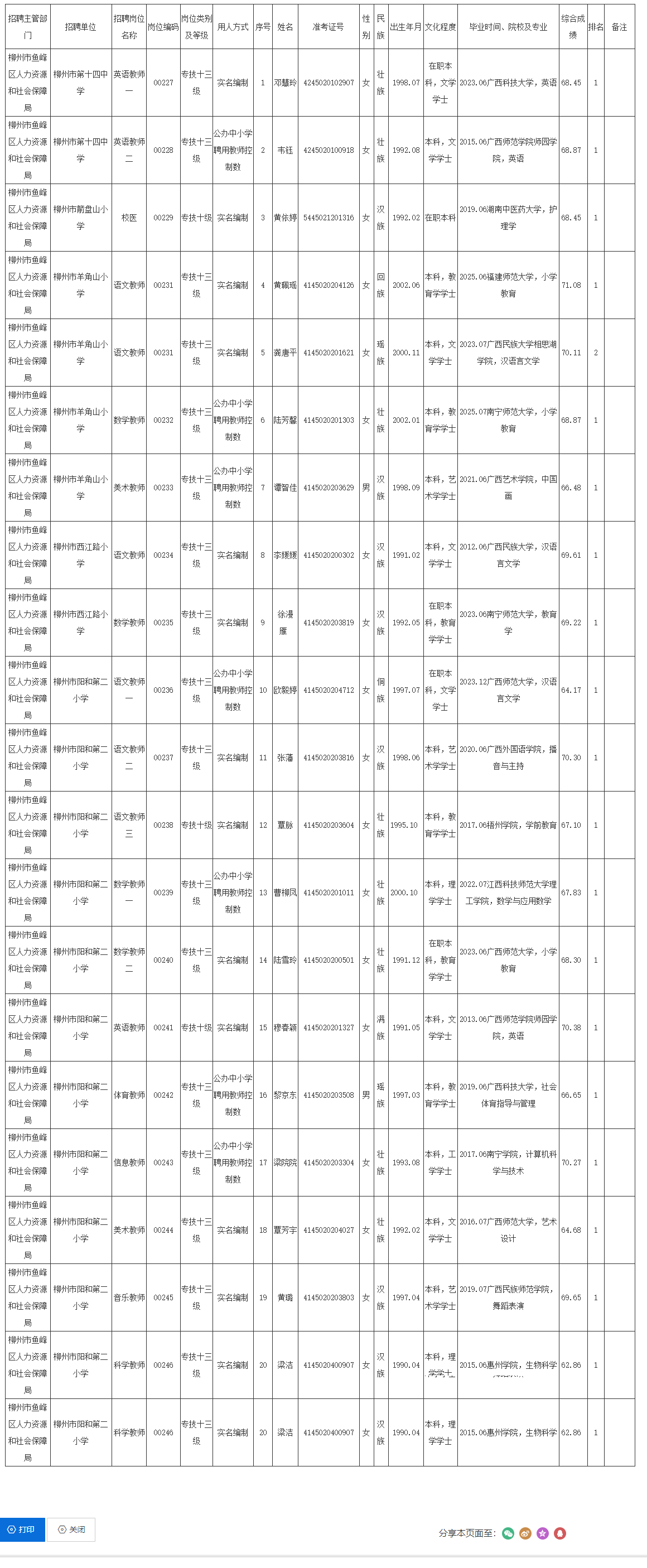 2025年柳州市魚峰區(qū)中小學校公開招聘工作人員擬聘用人選公示(第二批)
