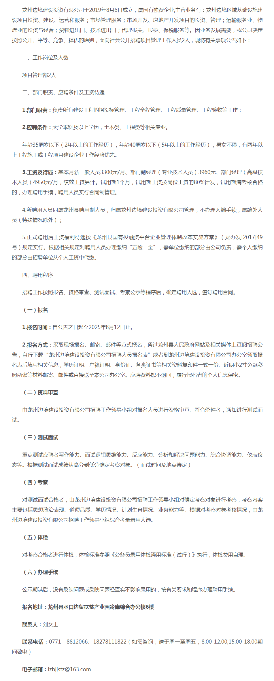 2025年崇左龍州邊境建設(shè)投資有限公司招聘2人