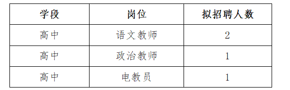 結合我校教育教學工作實際,經(jīng)研究,現(xiàn)面向社會公開招聘3名學科教師和1名電教員,有關事項公告如下: