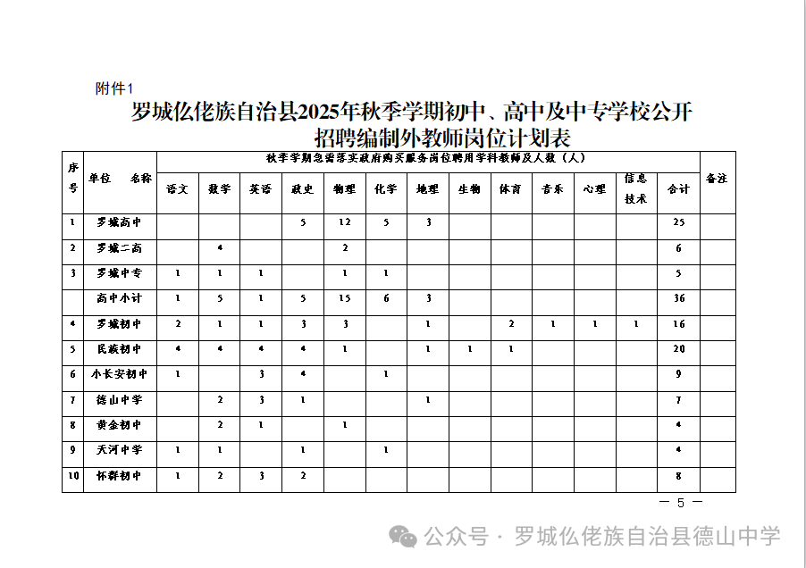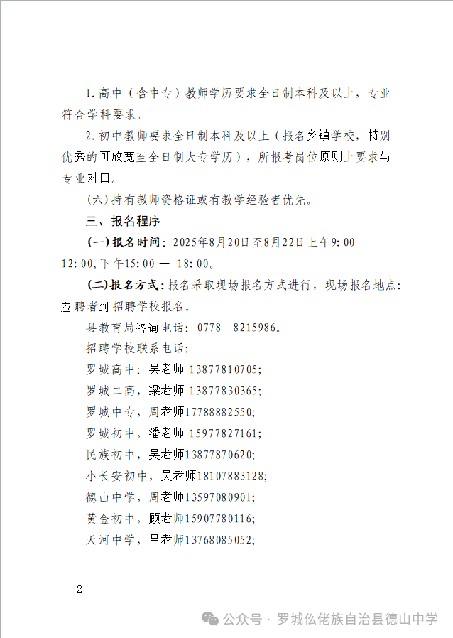 原文標題:羅城仫佬族自治縣2025年秋季學(xué)期初中、高中及中專學(xué)校公開招聘編制外教師工作的公告