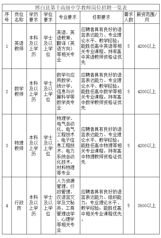 原文標(biāo)題:博白縣第十高級(jí)中學(xué)2025年人才招聘