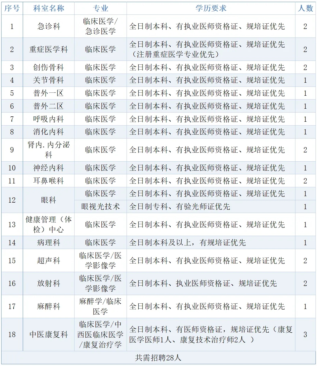 為了促進醫(yī)院醫(yī)療業(yè)務(wù)發(fā)展,擬招聘醫(yī)學類各專業(yè)技術(shù)人員, 招聘細則如下: